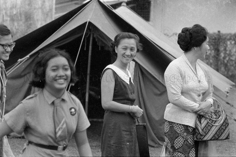 DAUGHTER OF PRESIDENT OF SINGAPORE YUSOF ISHAK, ZURIANA (LEFT), AT GIRL GUIDES EVENT.