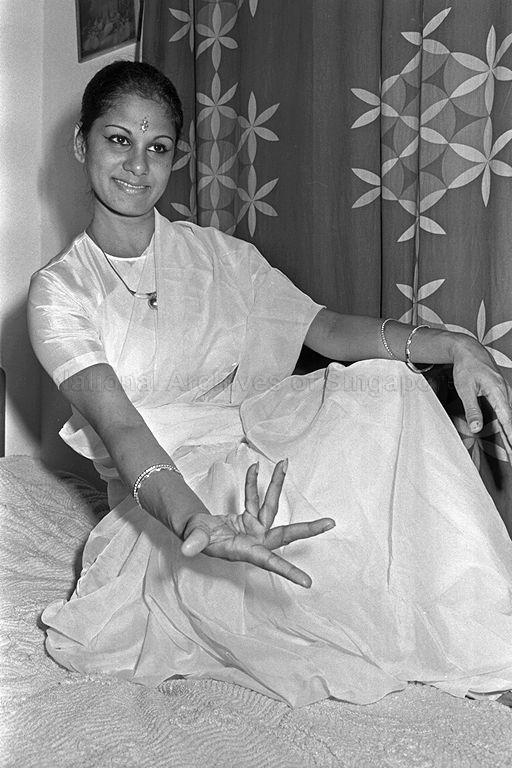 MISS MADHAVI KRISHNAN, NATIONAL DANCE COMPANY CHOREOGRAPHER AND DANCER. AFTER ATTENDING A COURSE IN MADRAS, INDIA, SHE HOPES TO INTRODUCE THE MOHINI ATTAM, A SOUTH INDIAN DANCE FORM TO THE LOCAL INDIAN STAGE PERFORMANCES. PICTURE SHOWS MISS KRISHNAN DEMONSTRATING THE 'SOFT' INDIAN DANCE POSE