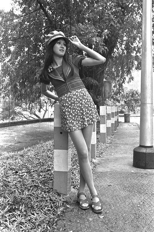 TAN LEE NAH IN A CASUAL OUTFIT DESIGNED BY BENJAMIN TAY. BENJAMIN IS A GRADUATE OF A FASHION DESIGNING COURSE AT THE ADULT EDUCATION BOARD. HE IS ONE OF TWO STUDENTS PICTED TO PRESENT A FASHION SHOW