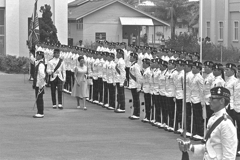 PRINCESS MARGARET'S OFFICIAL VISIT TO SINGAPORE. PICTURE SHOWS PRINCESS MARGARET INSPECTING THE GUARD OF HONOUR AT NEE SOON BARRACKS, HOME OF THE FIRST BATTALION OF THE ROYAL HIGHLAND FUSILIERS