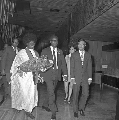 ARRIVAL OF PRIME MINISTER OF GAMBIA SIR DAWDA JAWARA (CENTRE) AND LADY JAWARA AT THE MING COURT HOTEL, SINGAPORE. SIR JAWARA IS HERE FOR THE COMMONWEALTH HEADS OF GOVERNMENT MEETING (CHOGM)