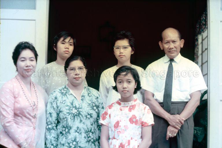PUAN NOOR AISHAH (LEFT) AND HER DAUGHTERS WITH PRESIDENT OF SINGAPORE YUSOF ISHAK'S SISTER AND HER FAMILY