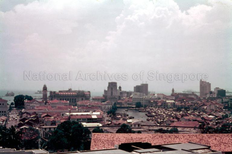 AERIAL VIEW OF SINGAPORE RIVER (CENTRE) AND SURROUNDING AREA, C1960S