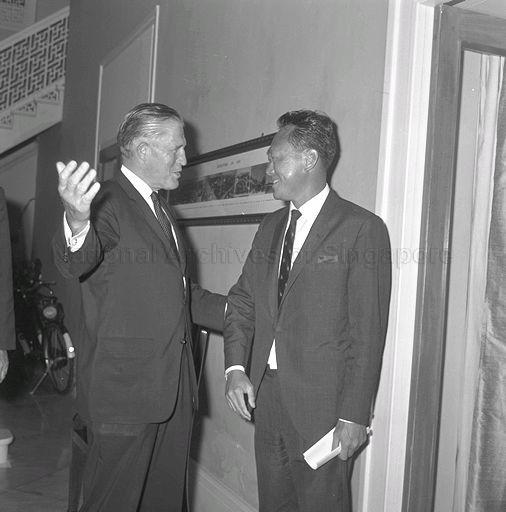 UNITED STATES (US) GOVERNOR OF MICHIGAN GEORGE ROMNEY (LEFT), 60, A PROSPECTIVE REPUBLICAN PRESIDENTIAL CANDIDATE FOR THE US ELECTIONS, ARRIVED IN THE RAIN THIS AFTERNOON AT SRI TEMASEK TO PAY A COURTESY CALL ON PRIME MINISTER LEE KUAN YEW (RIGHT)