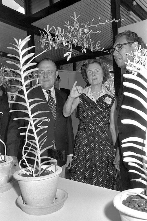 THE NEW ZEALAND PRIME MINISTER ROBERT MULDOON AND HIS WIFE, ACCOMPANIED BY NEW ZEALAND HIGH COMMISSIONER GERALD C HENSLEY AND HIS WIFE VISITED THE BOTANIC GARDENS AND WERE SHOWN AROUND BY SENIOR CURATOR OF THE GARDENS A G ALPHONSO AND CHAIRMAN OF SCIENTIFIC ENGINEERING TECHNICAL SERVICES COMPANY DR LEE KUM TATT. HIGHLIGHTS OF THEIR TOUR WAS THE NAMING OF AN ORCHID, RENANTANDA THEA MULDOON, IN HONOUR OF MRS MULDOON'S VISIT TO SINGAPORE