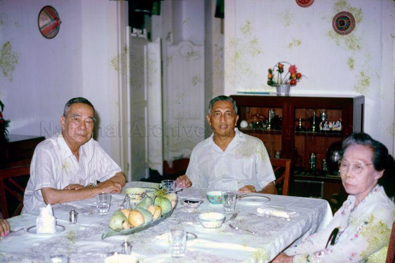 PRESIDENT YUSOF ISHAK WITH MRS LEE KUAN YEW'S PARENTS, KWA SIEW TEE (LEFT) AND WEE YEW NEO (SECOND LEFT), AT SRI MELATI, ISTANA