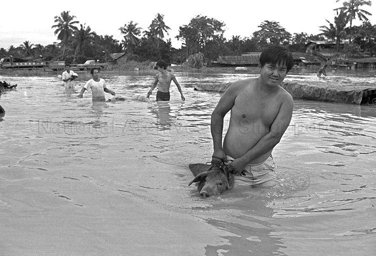 THE RAINS HELD OFF AS FLOOD WATERS RECEDED IN ALL PARTS OF SINGAPORE AND VICTIMS OF THE MASSIVE WEEKEND FLOODING COUNTED THEIR LOSS. THE FLOODS HAD CAUSED HEAVY DAMAGE TO PROPERTY, LIVESTOCK AND POULTRY. THE WORST HIT AREA WAS THE FARM BELT STRETCHING ACROSS WOODLANDS, BRADDELL ROAD, POTONG PASIR AND CHANGI. AT LEAST 2,000 PIGS AND A LARGE NUMBER OF POULTRY HAVE PERISHED AS FLOOD WATERS, SWOLLEN BY HEAVY RAIN, SWIRLED THROUGH THE FARMS ON SATURDAY AND SUNDAY MORNING