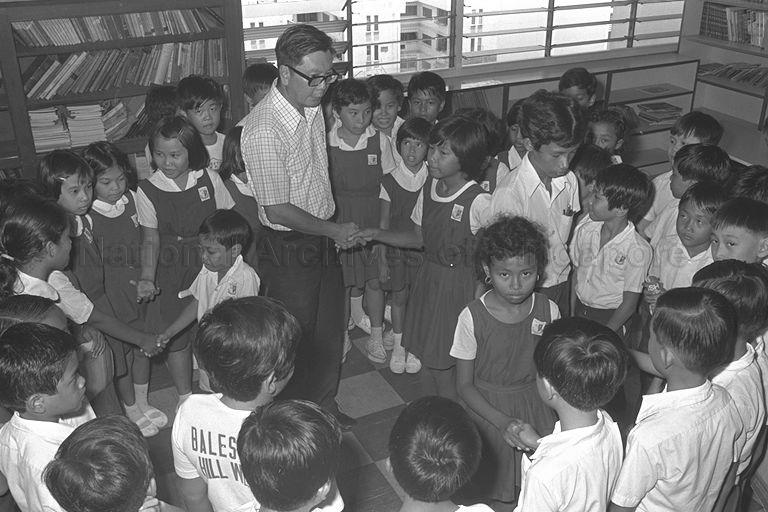 THE SPYROS DISASTER - THE STUDENTS AND STAFF OF BALESTIER HILL WEST SCHOOL HAVE SET UP AN EDUCATION FUND TO HELP FOUR OF THEIR SCHOOL MATES AND THEIR YOUNGER SISTER, WHOSE MOTHER DIED IN THE SPYROS TANKER DISASTER. THEIR PRINCIPAL WOON SUI CHEONG, SUGGESTED THIS IDEA AFTER HE LEARNED OF THE PLIGHT OF THE FOUR STUDENTS, KHUSAINI BIN WARKI, 12, NARHAYATI, 11, NINA SURYANI, 10 AND ISNAWAN, 7. PICTURE SHOWS NORHAYATI THANKING MR WOON WHILE HER BROTHER AND SISTER SHAKE HANDS WITH THEIR SCHOOLMATES. KHUSAINI IS ON THE RIGHT, BEHIND NINA. ON THE LEFT IS ISNAWAN