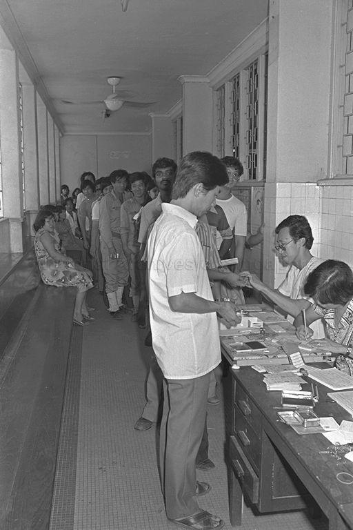 THE SPYROS DISASTER - PEOPLE WALKING IN TO THE SINGAPORE GENERAL HOSPITAL TO DONATE BLOOD FOR THE VICTIMS OF THE SPYROS TANKER EXPLOSION