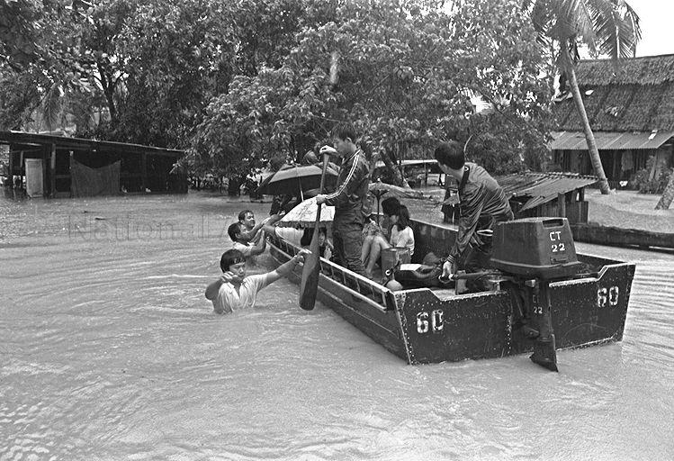 FLOODS, UNLEASHED BY THE HEAVIEST RAINFALL EVER RECORDED IN A SINGLE DAY, SWAMPED SINGAPORE FOR THE SECOND DAY. RESCUE TEAMS FROM THE SINGAPORE ARMED FORCES WENT INTO THE RESCUING OPERATION IN THEIR POWER BOATS AFTER WATER LEVELS BEGAN RISING AT POTONG PASIR