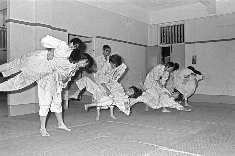 WOMEN MILITARY POLICE (MP) PRACTISING JUDO AT THE PROVOSE HEADQUARTERS IN HILL STREET, SINGAPORE