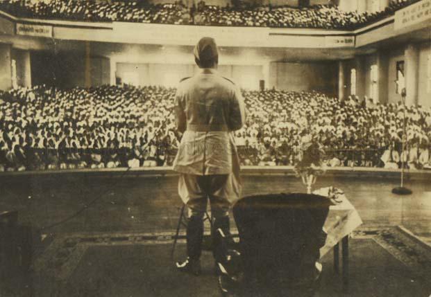 SUBHAS CHANDRA BOSE ADDRESSING A MASS RALLY AT THE CATHAY BUILDING, SINGAPORE, C1942-1945