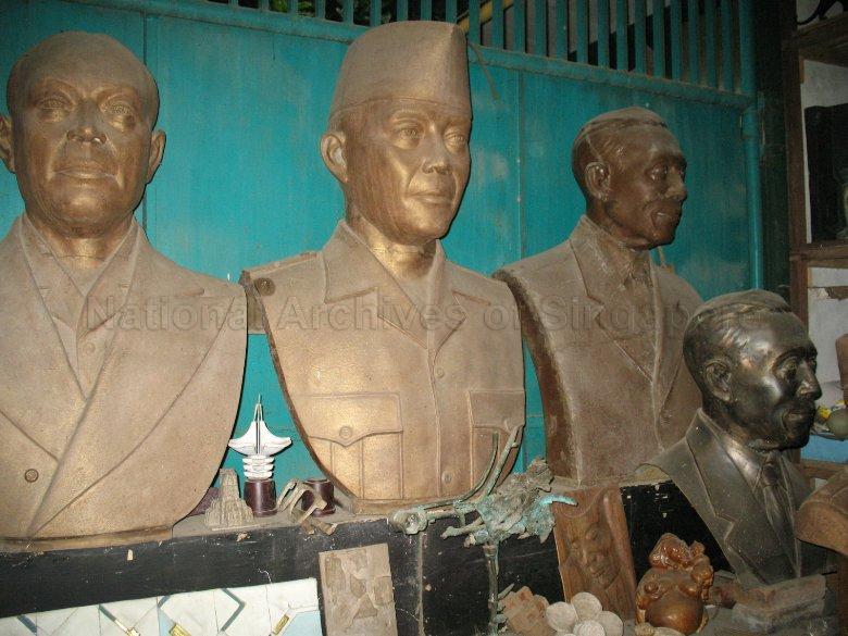 LEARNING JOURNEY BY SOUTHEAST ASIAN REGIONAL BRANCH INTERNATIONAL COUNCIL ON ARCHIVES (SARBICA) DELEGATION TO A SCULPTOR'S HOME IN BANDUNG, INDONESIA, HIRED BY ARSIP NASIONAL REPUBLIK INDONESIA (ANRI) TO PRODUCE EXHIBITION ITEMS FOR ANRI'S DIORAMA. BRONZE STATUES OF FORMER INDONESIAN LEADERS MADE BY THE SCULPTOR FOR THE DIORAMA