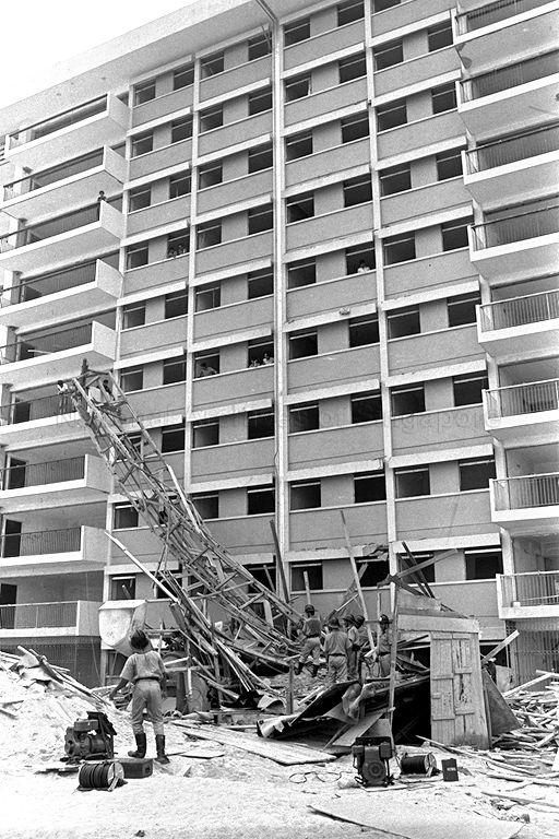 A 17-YEAR OLD PENANG GIRL, LEONG KIT HAR, WAS KILLED WHEN A 10-STOREY HIGH SCAFFOLDING ON A BUILDING COLLAPSED ON HER AT TAMAN JURONG. THREE OTHER CONSTRUCTION WORKERS, WORKING AT VARIOUS HEIGHTS ON THE SCAFFOLDING WERE SERIOUSLY INJURED AND WARDED AT OUTRAM HOSPITAL. IT TOOK THEIR WORKMATES, A TROOP OF POLICE RESERVE UNIT AND OFFICERS FROM TWO FIRE BRIGADES, MORE THAN AN HOUR TO EXTRICATE THEM FROM THE DEBRIS