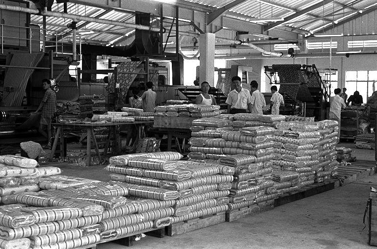 THE HONGKONG DYEING AND WEAVING (SINGAPORE) LIMITED IN JURONG WHICH PRODUCES PRINTED COTTON SHIRTING, DYED COTTON SHIRTING, PRINTED COTTON FLANNELETTE AND PRINTED OR DYED POPLIN. ONLY ONE YEAR AFTER STARTING OPERATIONS IN JURONG, THE COMPANY IS FAST BECOMING A MAJOR EXPORT EARNER IN TEXTILES WITH $3 MILLION WORTH OF ORDERS ON ITS BOOKS. CONSIGNMENTS OF TEXTILES HAVE BEEN SHIPPED TO CEYLON, AUSTRALIA AND INDONESIA