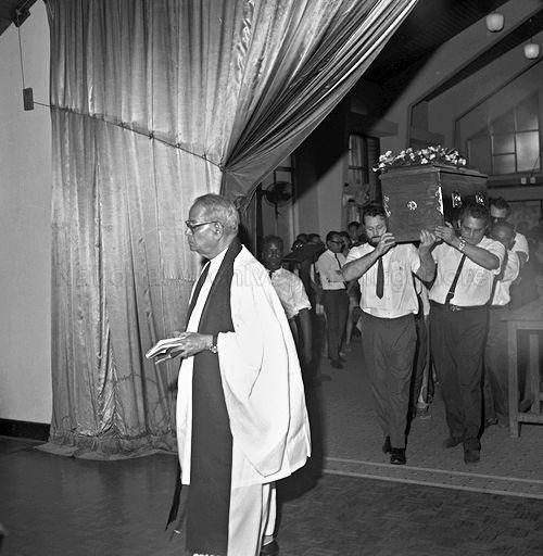 KING KONG, THE FAMOUS WRESTLER DIED IN HOSPITAL OF INJURIES SUSTAINED IN A ROAD ACCIDENT WHICH HAPPENED IN MARCH. SIX STALWARTS OF THE WRESTLING RING WERE HIS PALL BEARERS AT THE FUNERAL SERVICE AT MOUNT VERNON (HIDDEN IN PICTURE)
