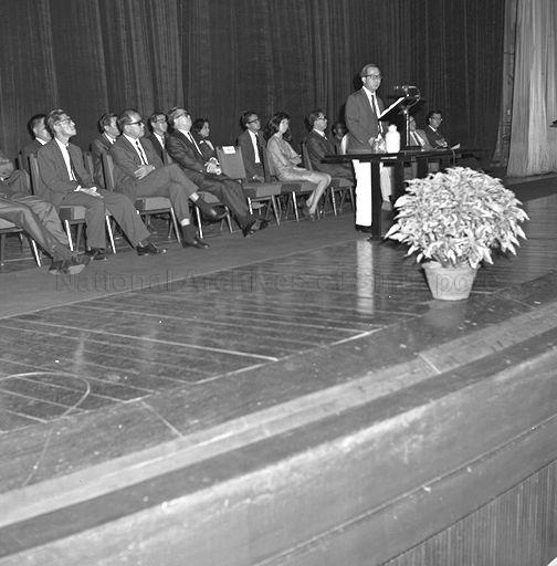 VICE-CHANCELLOR OF THE UNIVERSITY OF SINGAPORE DR TOH CHIN CHYE, ADRESSING ABOUT 1,400 NEW STUDENTS OF THE UNIVERSITY OF SINGAPORE ATTENDED THEIR WELCOME CONVENTION AT THE NATIONAL THEATRE. DR TOH STRESSED THAT STRONG DISCIPLINARY ACTION WILL BE TAKEN IF PEACE ON THE CAMPUS IS NOT MAINTAINED. HE WAS SPEAKING AGAINST RAGGING IN CAMPUS