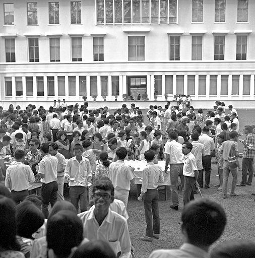 THERE WAS NO RAGGING WHEN NEW STUDENTS OF THE UNIVERSITY OF SINGAPORE MET THEIR SENIORS FORMALLY AT A SPECIAL WELCOME TEA HELD OUTSIDE THE LIBRARY