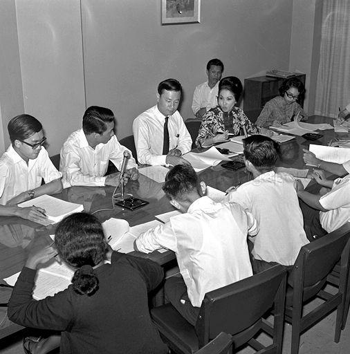 PRESS CONFERENCE BY CHAIRMAN OF THE NATIONAL THEATRE TRUST DR GOH POH SENG (WITH TIE). HE ANNOUNCED THAT THE NATIONAL THEATRE DANCE COMPANY WILL MARK ITS DEBUT WITH A BALLET IN CELEBRATION OF SINGAPORE'S 150TH ANNIVERSARY CELEBRATIONS