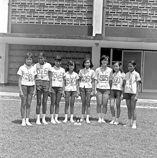 THE CHAMPION FOR THE INTER-HOUSE 'C' DIVISION FOR GIRLS' AT TUN SERI LANANG SECONDARY SCHOOL'S CROSS-COUNTRY EVENT ARE THE SULAIMAN HOUSE. FROM LEFT, NORHAYATI OSMAN, SUBAIDAH HANEEFA, ENY WINARYATI ARIFFIN, MOLLY YEO, ROSNAH BTE JAMIL, TAN LEE CHENG, NORLITA SO MO AND NORMAN ABDUL