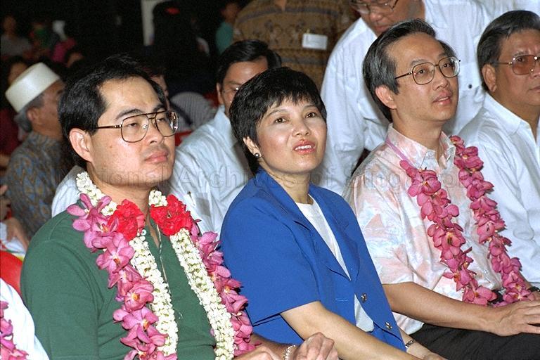 ACTING MINISTER FOR NATIONAL DEVELOPMENT AND SENIOR MINISTER OF STATE (MOS) FOR FOREIGN AFFAIRS LIM HNG KIANG ON COMMUNITY VISIT TO YUHUA CONSTITUENCY - PICTURE SHOWS ACTING MINISTER FOR NATIONAL DEVELOPMENT AND SENIOR MOS FOR FOREIGN AFFAIRS LIM HNG KIANG SEATED WITH MEMBERS OF PARLIAMENT MRS YU-FOO YEE SHOON (YUHUA) AND DR ONG CHIT CHUNG (BUKIT BATOK)