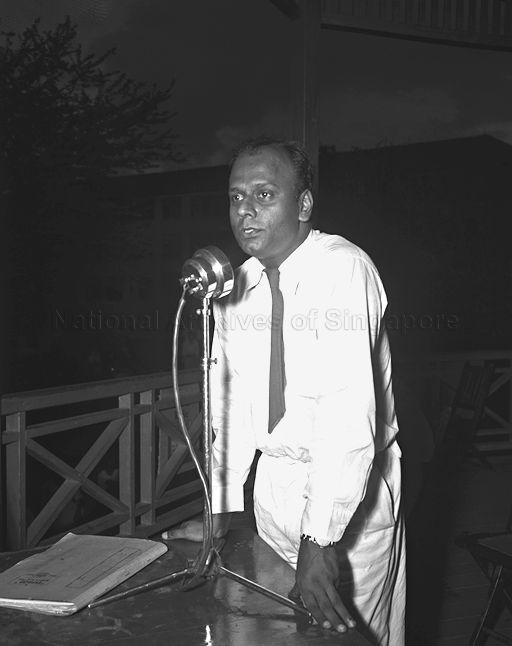 A P RAJAH, PROGRESSIVE CANDIDATE FOR THE NORTH WARD IN THE CITY COUNCIL ELECTIONS SPEAKING AT AN ELECTION MEETING AT FARRER PARK