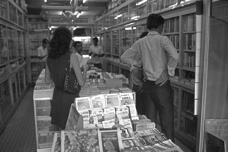 PEOPLE BROWSING THROUGH BOOKS IN A BOOKSHOP ALONG BRAS BASAH ROAD
