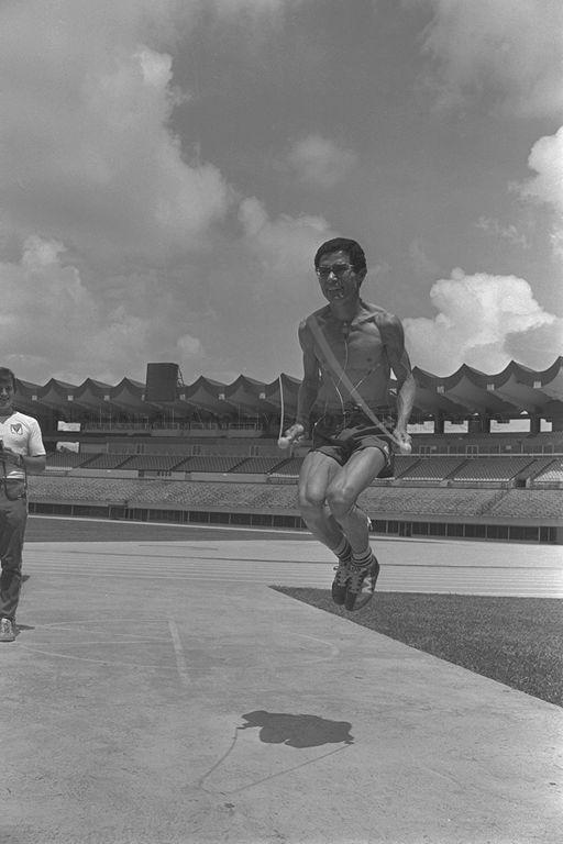 WORLD SKIPPING ROPE CHAMPION KATSUMI SUZUKI, 40, UNDERWENT A THREE-HOUR COMPREHENSIVE EXTENDED MEDICAL AND PHYSICAL FITNESS EXAMINATION AND ASSESSMENT AT THE SPORTS MEDICINE AND RESEARCH CENTRE. WITH ELECTRODES ATTACHED TO HIS CHEST SO THAT HIS HEART WOULD BE MONITORED BY AN ELECTROCARDIOGRAM, HE UNDERWENT A RIGOROUS TEST, SUPERVISED BY DR GIAM CHOO KEONG, HEAD OF THE CENTRE (NOT IN PICTURE)