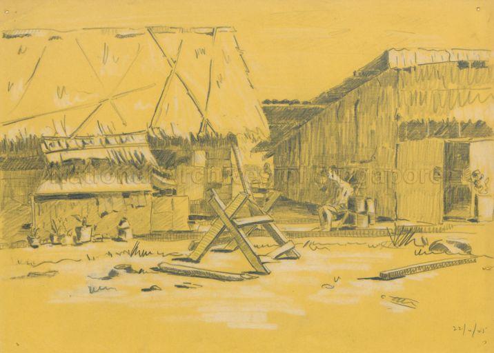 Mr William Haxworth was working as the Chief Investigator of the War Risks Insurance Department of the Singapore Treasury when the war broke out. He was subsequently interned by the Japanese, first in Changi Prison and later transferred to Sime Road Internment Camp. He secretly drew over 300 small paintings and sketches that depicted the harsh, crowded and unhygienic living conditions in these POW camps.