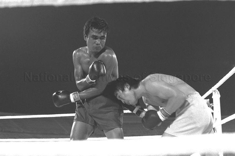 BOXING AT THE NATIONAL STADIUM. LIGHTWEIGHT BOUT BETWEEN JAPAN'S MASASHI KAMIYAMA (RIGHT) AND THAILAND'S MALAI THONG. MALAI WON THE 10-ROUND BOUT ON POINTS