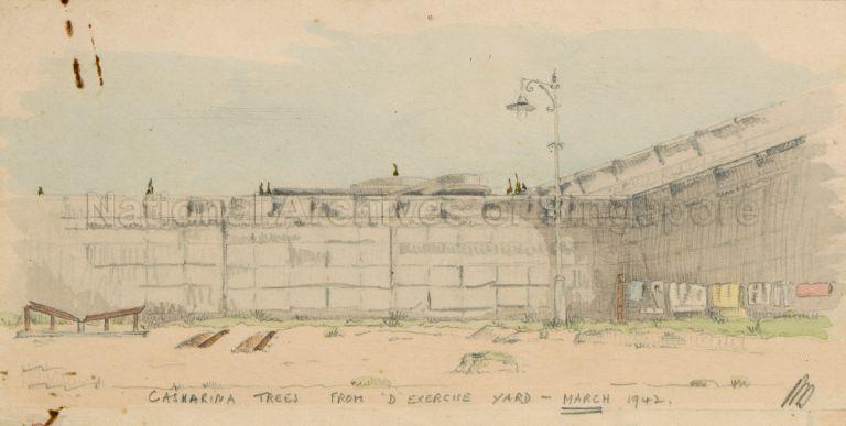PRISON CAMP - CASUARINA TREES - SEEN FROM 'D' EXERCISE YARD - MAR 1942