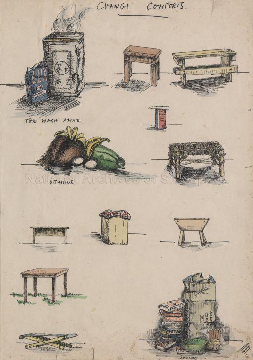 Mr William Haxworth was working as the Chief Investigator of the War Risks Insurance Department of the Singapore Treasury when the war broke out. He was subsequently interned by the Japanese, first in Changi Prison and later transferred to Sime Road Internment Camp. He secretly drew over 300 small paintings and sketches that depicted the harsh, crowded and unhygienic living conditions in these POW camps.