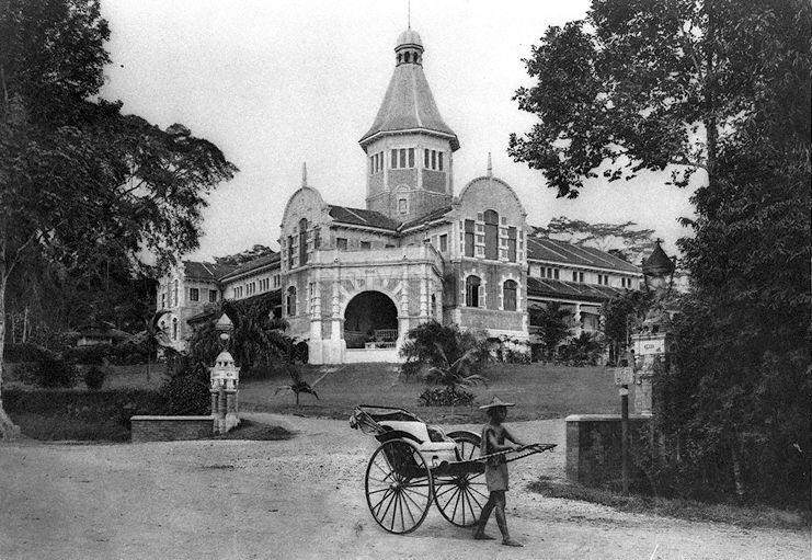 VIEW OF A RICKSHAW PULLER AT THE ENTRANCE OF THE TEUTONIA CLUB, PRESENTLY KNOWN AS GOODWOOD PARK HOTEL