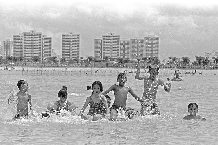 THE EAST COAST PARK LAGOON. CHILDREN AND ADULTS CAME TO THE OPENING OF THE $4 MILLION GIANT LAGOON AT EAST COAST PARK YESTERDAY. THE 6.1 HECTARE OVAL-SHAPED LAGOON IS SEPARATED IN TWO BY A BUND, MARKING THE ADULTS SECTION (5.3 HECTARES) FROM THE CHILDREN'S (0.8 HECTARES). THE LAGOON CAN ACCOMODATE ABOUT 6,000 SWIMMERS AT A TIME AND HAS CHANGING ROOMS, LOCKERS, SHOWERS, TOILETS AND REFRESHMENT KIOSKS