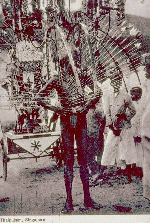 An Indian devotee carrying a kavadi at the Hindu festival of Thaipusam, Singapore