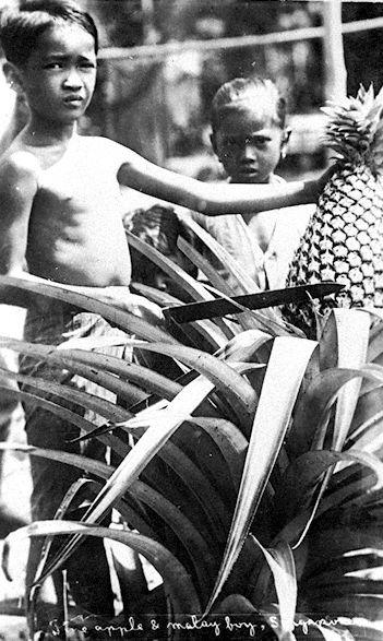 PHOTOGRAPH OF A MALAY BOY AND A GIRL WITH PINEAPPLE, SINGAPORE
