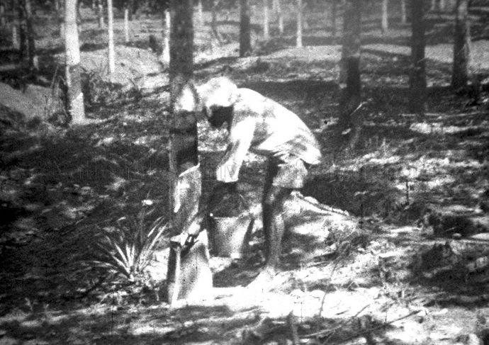 RUBBER TAPPER AT RUBBER PLANTATION