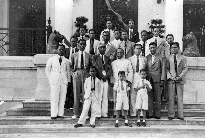ENG AUN TONG (TIGER BALM) STAFF AT CHINESE NEW YEAR GATHERING AT JADE HOUSE, NO 3, NASSIM ROAD. FRONT ROW, TWO YOUNG BOYS ARE AW BOON HAW'S SONS (RIGHT AW IT HAW, AW GEE HAW & RELATIVE OF AW BOON HAW).