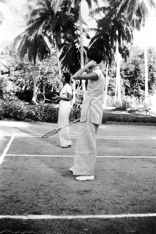 MEMBERS OF YOUNG WOMEN'S CHRISTIAN ASSOCIATION (YWCA) PLAYING BADMINTON AT HOSTEL COURTS