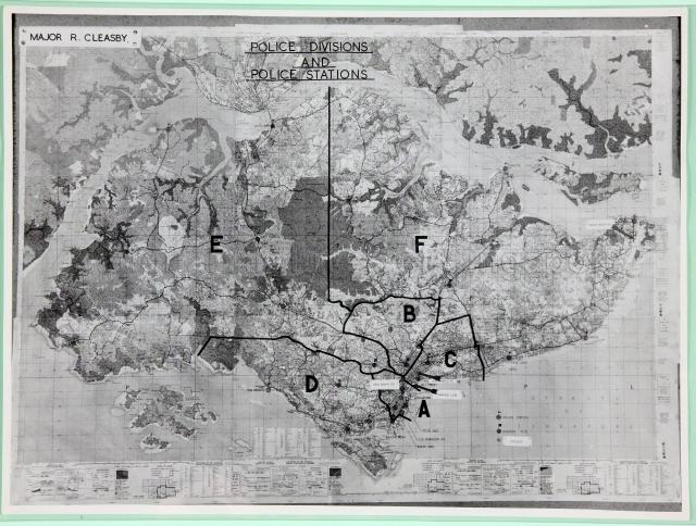 SINGAPORE 11. SINGAPORE POLICE DIVISIONS. MAP OF POLICE DIVISIONS AND STATIONS UNDER MAJOR R CLEASBY