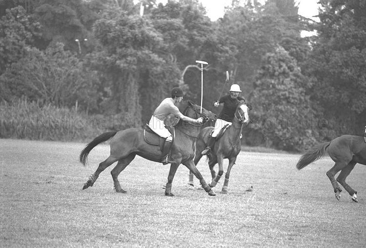 Prince Charles and Ken Buchanan in a friendly polo match at the Singapore Polo Club. Prince Charles is in Singapore to join the frigate HMS Jupiter at ANZUK Naval Base as a naval lieutenant.