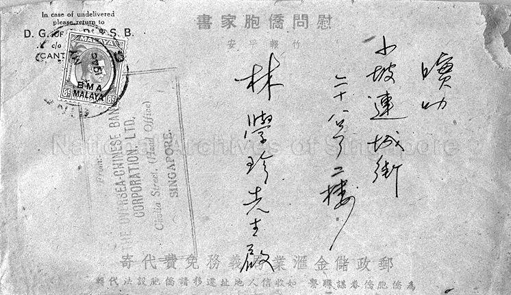 OUTER ENVELOPE OF A REMITTANCE FROM SINGAPORE TO CHINA