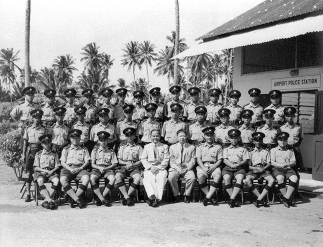 GOUP PHOTO OF POLICE FORCE AT PAYA LEBAR AIRPORT POLICE STATION (C1950S)