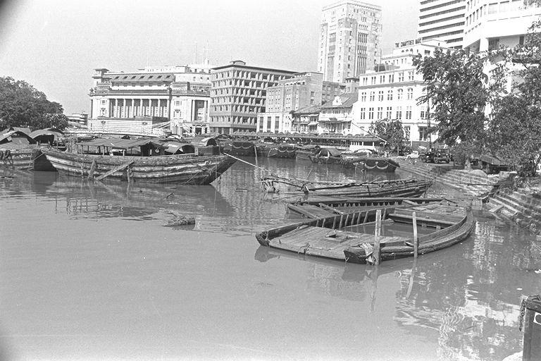 OLD BUMBOATS AND TONGKANG AT THE SINGAPORE RIVER
