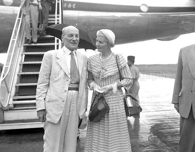 BRITISH LABOUR PARTY LEADER CLEMENT ATTLEE AND HIS WIFE AT KALLANG AIRPORT, SINGAPORE