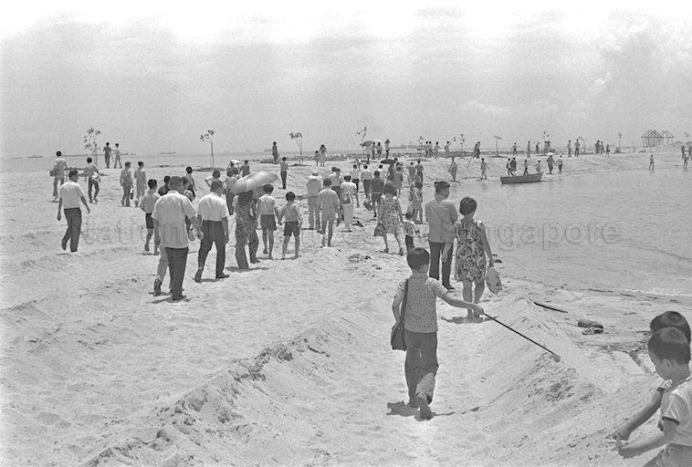 KUSU ISLAND BEACH. THE PORT OF SINGAPORE AUTHORITY AND THE SENTOSA DEVELOPMENT CORPORATION JOINTLY OPENED UP TWO REFURBISHED ISLANDS FOR PICNICKERS - KUSU AND HANTU, COMPLETE WITH SWIMMING LAGOONS TOPPED UP WITH TRANSHIPPED SAND, JETTIES, FERRY SERVICES, SHELTERS, CHANGING ROOM, HAWKER STALLS AND TOILETS