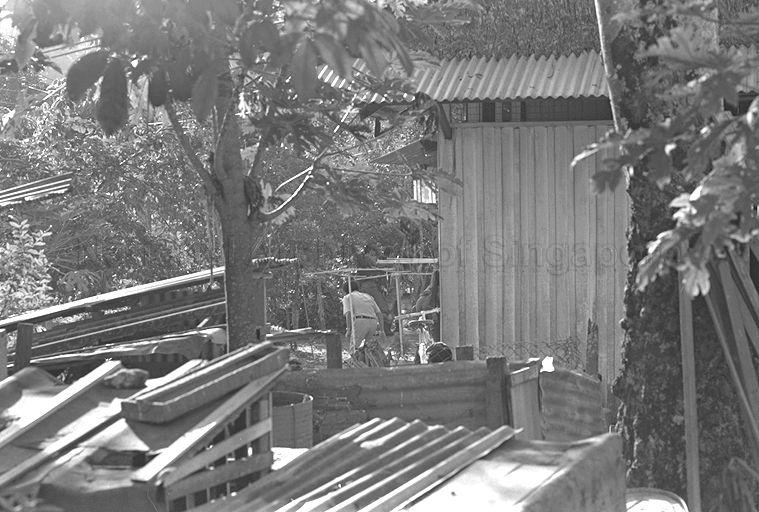 ARMY CORPORAL LIM HWEE HUA, 23, WALKED OUT OF THE FRONT DOOR OF A BESIEGED HOUSE IN JALAN KUKUS, UPPER THOMSON, ALONE AND UNARMED - ENDING A 30-HOUR DRAMA DURING WHICH HE KEPT SCORES OF POLICEMEN AND SOLDIERS AT BAY WITH AN ARMALITE RIFLE AND PUT THE LIVES OF A YOUNG MOTHER AND HER TWO-MONTH OLD BABY IN PERILOUS BALANCE FOR THE WHOLE DAY. BLOOD OOZED OUT OF HIS RIGHT ARM FROM A WOUND INFLICTED BY A COMMANDO SHARPSHOOTER A LITTLE EARLIER, BUT OTHERWISE CORPORAL LIM IN A RED T-SHIRT AND GREEN ARMY TROUSERS, LOOKED NONE THE WORSE FOR THE GRIM SAGA HE HAD JUST LIVED THROUGH. PICTURE SHOWS A SINGAPORE ARMED FORCES COMMANDO COMFORTING CORPORAL LIM MOMENTS AFTER HE GAVE HIMSELF UP.