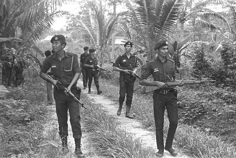 ARMED RESERVE UNIT MEN COMBING THE SELETAR RESERVOIR AND MANDAI AREAS LOOKING FOR A BLACK PANTHER WHICH WAS FOUND MISSING FROM ITS CAGE AT THE SINGAPORE ZOOLOGICAL GARDEN. POLICE ALSO PATROLLED THE BEARBY HOMES FOR SAFETY OF THE RESIDENCE.