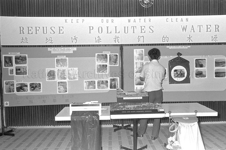 AN EXHIBITION ON 'KEEP OUR WATER CLEAN' CAMPAIGN WAS HELD AT THE SINGAPORE CONFERENCE HALL. THE CAMPAIGN IS AIMED AT INCREASING NATIONAL AWARENESS OF THE PROBLEMS OF WATER POLLUTION AND THE WAYS OF PREVENTING IT.