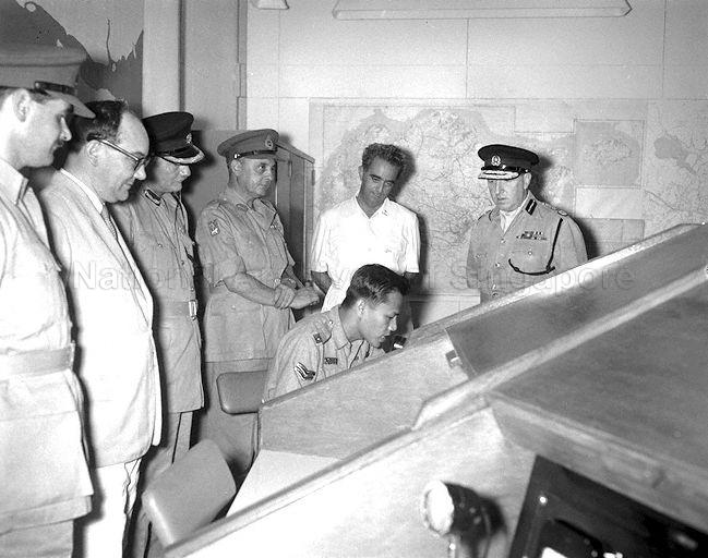 CHIEF MINISTER DAVID MARSHALL AT OPENING OF OPERATIONAL HEADQUARTERS AT PEARL'S HILL